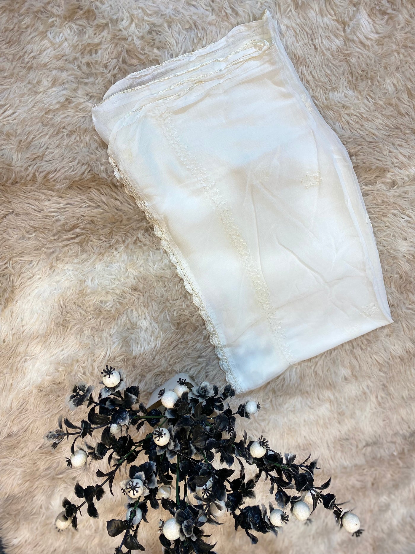Crochet lace with chikankari work
