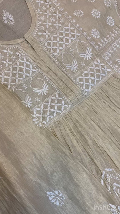 Beige UnStitched Tissue Silk anarkali Piece with Dupatta