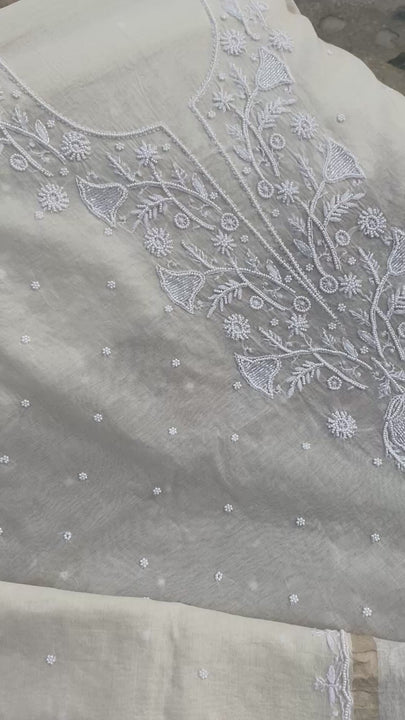 WHITE MUL CHANDERI UNSTITCHED KURTI WITH DUPATTA SET